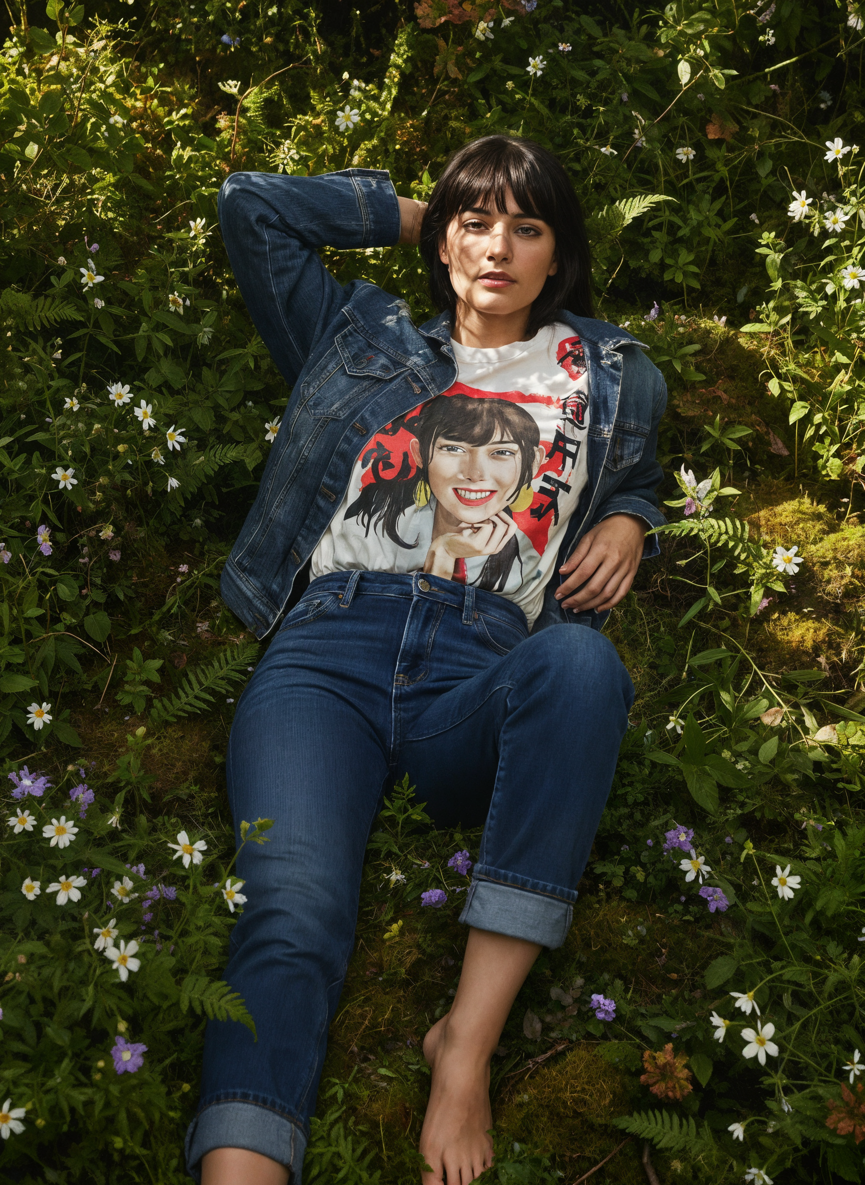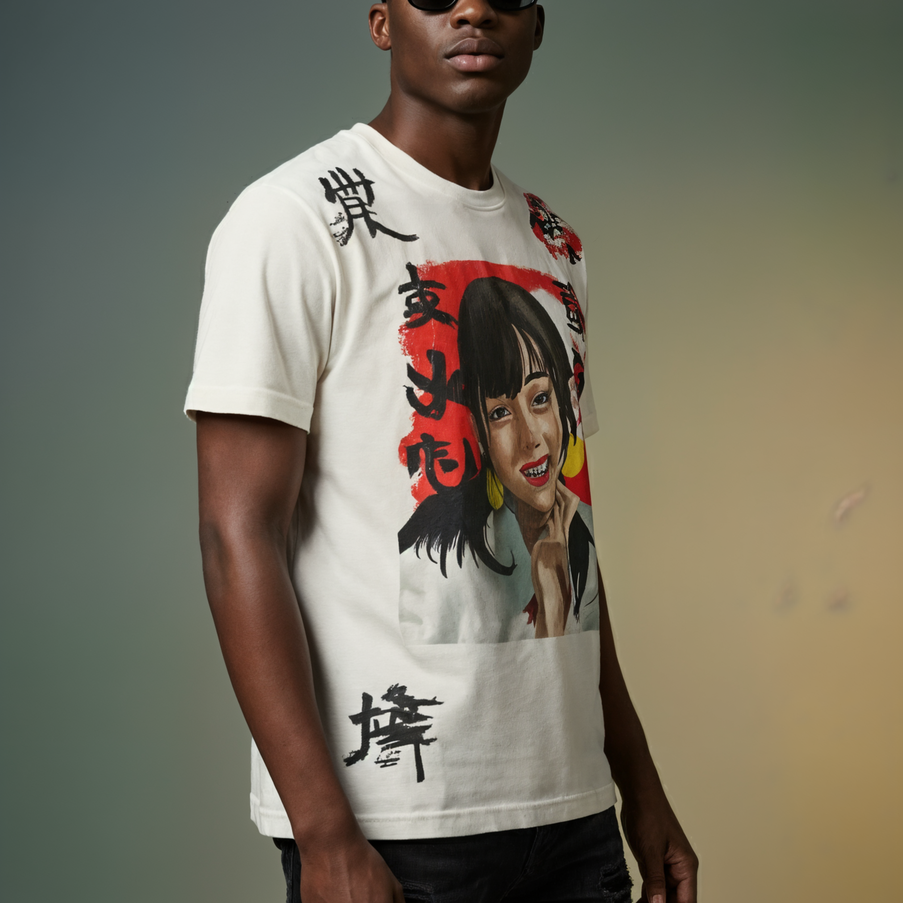Vintage Snow Washed Oversized Cotton T-Shirt – Chinese Portrait Design